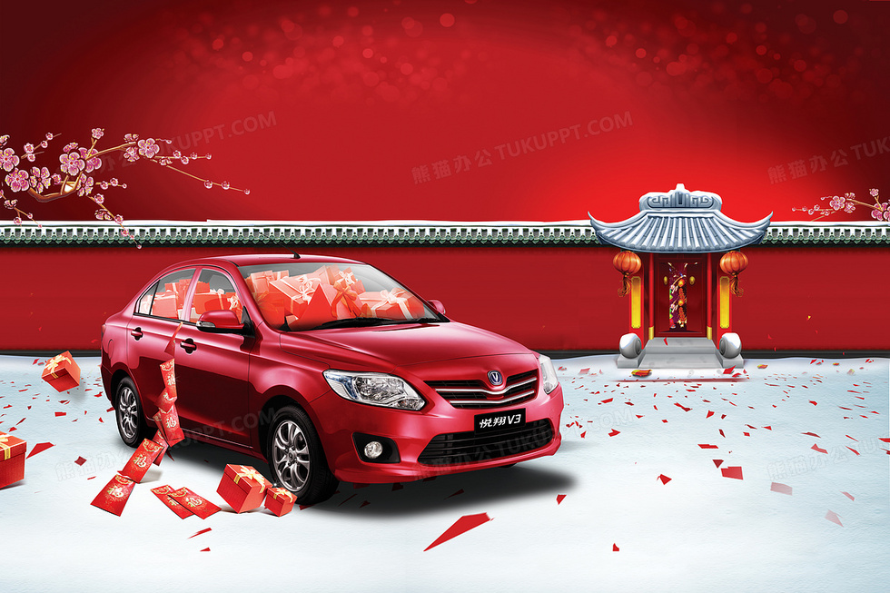 本作品内容为红色汽车新年背景素材, 格式为 psd, 图片尺寸为7087 x 4724, 作品中背景图片无需修改, 源文件无水印,可以直接使用, 欢迎使用熊猫办公。 如认为平台内容涉嫌侵权,可通过邮件:tousu@tukuppt.com提出书面通知,我们将及时处理。