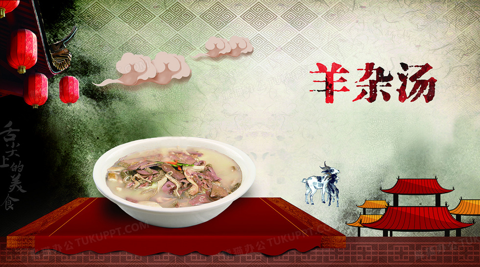 本作品内容为冬至古街羊杂汤美食背景素材, 格式为 psd, 图片尺寸为5315 x 2953, 作品中背景图片无需修改, 源文件无水印,可以直接使用, 欢迎使用熊猫办公。 如认为平台内容涉嫌侵权,可通过邮件:tousu@tukuppt.com提出书面通知,我们将及时处理。