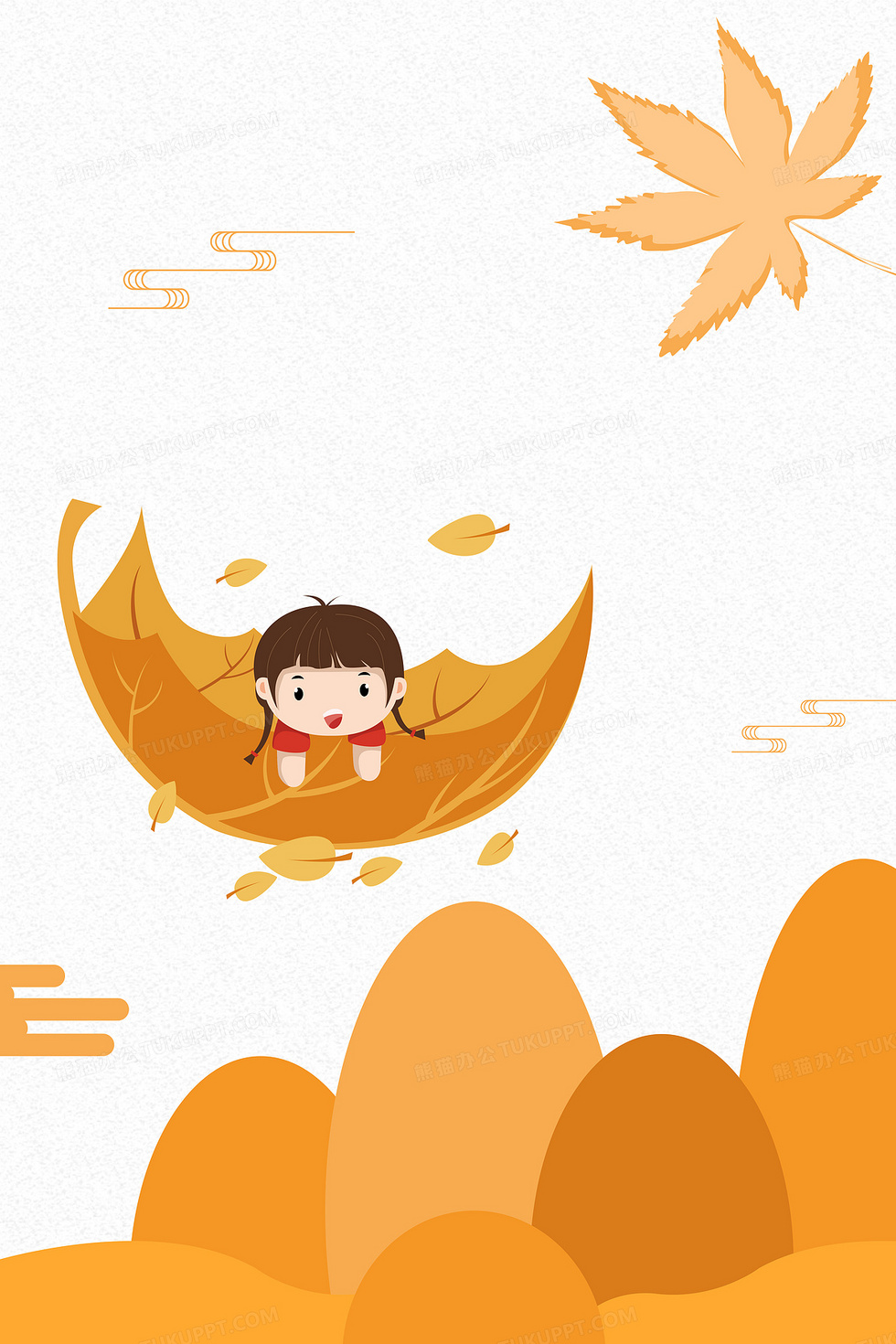 本作品内容为金秋落叶简约风卡通立秋秋分背景, 格式为 psd, 大小22 MB, 图片尺寸为7086 x 10631, 作品中背景图片无需修改, 源文件无水印,可以直接使用, 欢迎使用熊猫办公。 如认为平台内容涉嫌侵权,可通过邮件:tousu@tukuppt.com提出书面通知,我们将及时处理。