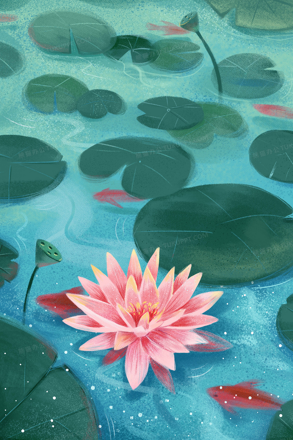 本作品内容为荷塘荷花夏日清凉插画手绘背景, 格式为 psd, 大小213 MB, 图片尺寸为4724 x 7087, 作品中背景图片无需修改, 源文件无水印,可以直接使用, 欢迎使用熊猫办公。 如认为平台内容涉嫌侵权,可通过邮件:tousu@tukuppt.com提出书面通知,我们将及时处理。