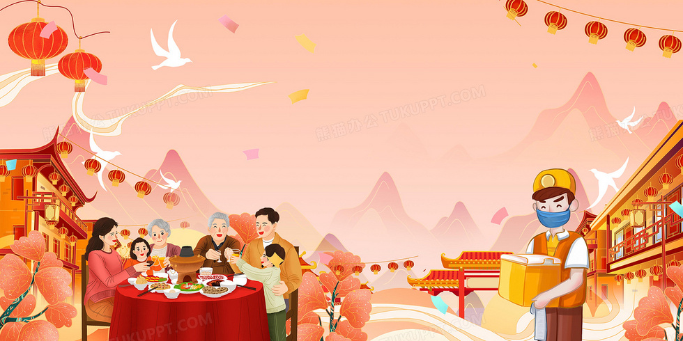本作品内容为新年年夜饭外卖配送业务合成背景, 格式为 psd, 大小57 MB, 图片尺寸为4724 x 2362, 作品中背景图片无需修改, 源文件无水印,可以直接使用, 欢迎使用熊猫办公。 如认为平台内容涉嫌侵权,可通过邮件:tousu@tukuppt.com提出书面通知,我们将及时处理。