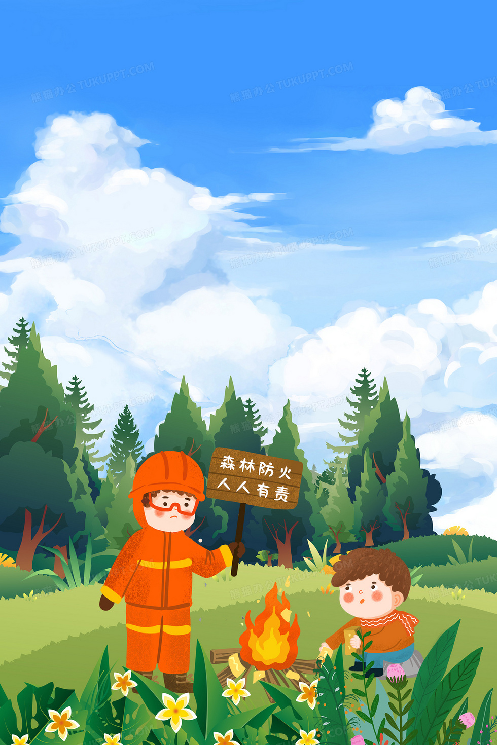 本作品内容为卡通插画风森林防火背景, 格式为 psd, 大小37 MB, 图片尺寸为3543 x 5314, 作品中背景图片无需修改, 源文件无水印,可以直接使用, 欢迎使用熊猫办公。 如认为平台内容涉嫌侵权,可通过邮件:tousu@tukuppt.com提出书面通知,我们将及时处理。