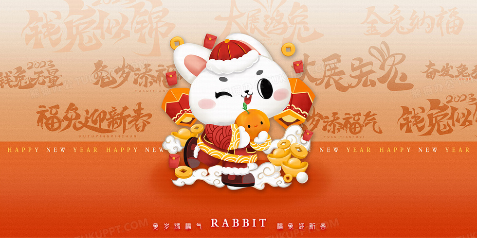 本作品内容为2023卡通兔年之大吉大利背景图, 格式为 psd, 大小128 MB, 图片尺寸为4722 x 2361, 作品中背景图片无需修改, 源文件无水印,可以直接使用, 欢迎使用熊猫办公。 如认为平台内容涉嫌侵权,可通过邮件:tousu@tukuppt.com提出书面通知,我们将及时处理。