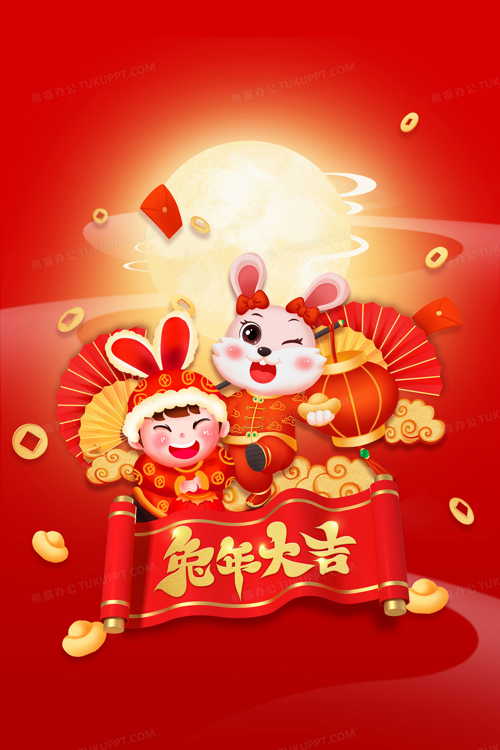 本作品内容为2023兔子福娃同庆兔年背景, 格式为 psd, 大小86 MB, 图片尺寸为3543 x 5314, 作品中背景图片无需修改, 源文件无水印,可以直接使用, 欢迎使用熊猫办公。 如认为平台内容涉嫌侵权,可通过邮件:tousu@tukuppt.com提出书面通知,我们将及时处理。