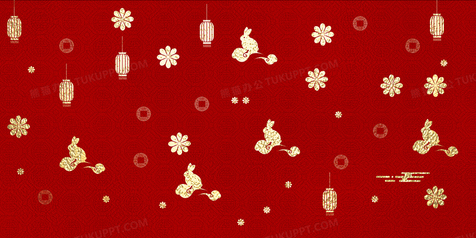 本作品内容为红色烫金2023兔年背景素材, 格式为 psd, 大小262 MB, 图片尺寸为4724 x 2362, 作品中背景图片无需修改, 源文件无水印,可以直接使用, 欢迎使用熊猫办公。 如认为平台内容涉嫌侵权,可通过邮件:tousu@tukuppt.com提出书面通知,我们将及时处理。