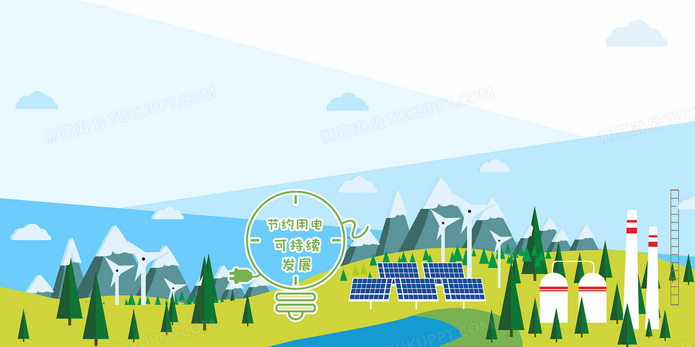 本作品内容为节约用电可持续发展扁平简约背景, 格式为 psd, 大小3 MB, 图片尺寸为4724 x 2362, 作品中背景图片无需修改, 源文件无水印,可以直接使用, 欢迎使用熊猫办公。 如认为平台内容涉嫌侵权,可通过邮件:tousu@tukuppt.com提出书面通知,我们将及时处理。