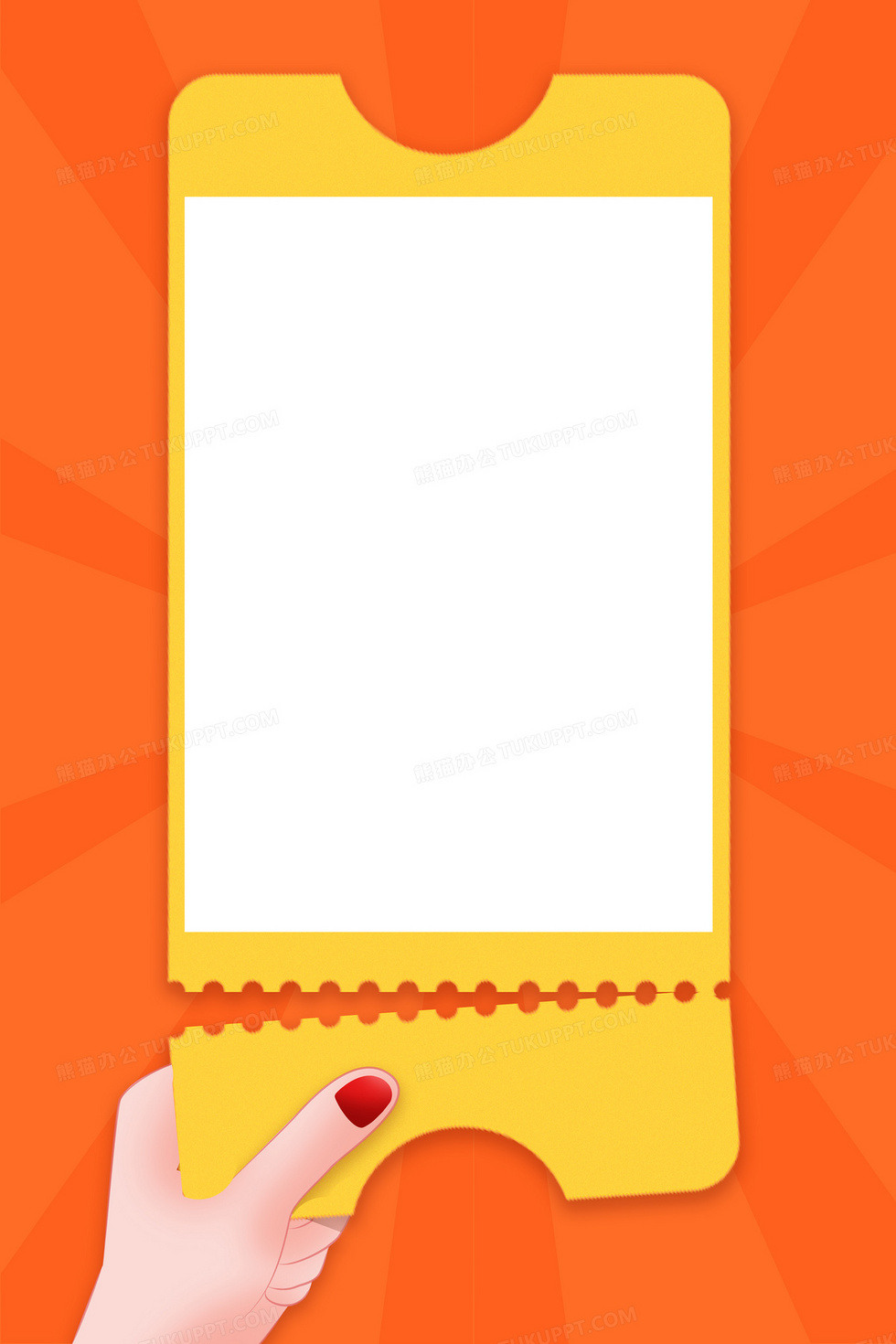 本作品内容为橙色简约车票创意边框背景, 格式为 psd, 大小26 MB, 图片尺寸为3543 x 5315, 作品中背景图片无需修改, 源文件无水印,可以直接使用, 欢迎使用熊猫办公。 如认为平台内容涉嫌侵权,可通过邮件:tousu@tukuppt.com提出书面通知,我们将及时处理。