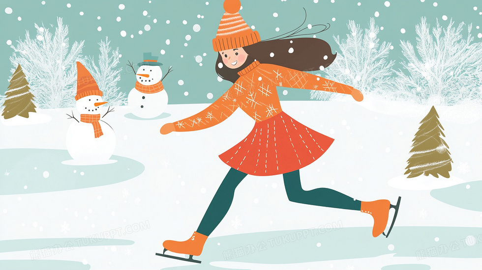 本作品内容为女孩滑冰小雪节气冬天插画, 格式为 jpg, 大小2 MB, 图片尺寸为2912 x 1632, 源文件无水印, 欢迎使用熊猫办公。 如认为平台内容涉嫌侵权,可通过邮件:tousu@tukuppt.com提出书面通知,我们将及时处理。