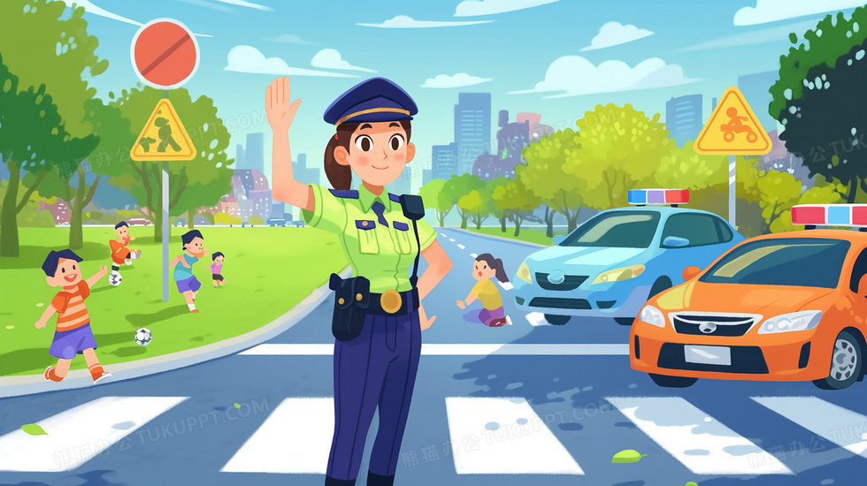 本作品内容为道路中心指挥交通的女交警插画, 格式为 jpg, 大小2 MB, 图片尺寸为2912 x 1632, 源文件无水印, 欢迎使用熊猫办公。 如认为平台内容涉嫌侵权,可通过邮件:tousu@tukuppt.com提出书面通知,我们将及时处理。