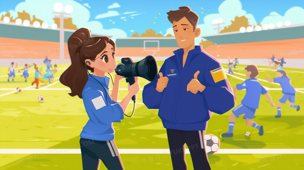 本作品内容为女记者现场采访足球体育赛事插画, 格式为 jpg, 大小2 MB, 图片尺寸为2912 x 1632, 源文件无水印, 欢迎使用熊猫办公。 如认为平台内容涉嫌侵权,可通过邮件:tousu@tukuppt.com提出书面通知,我们将及时处理。