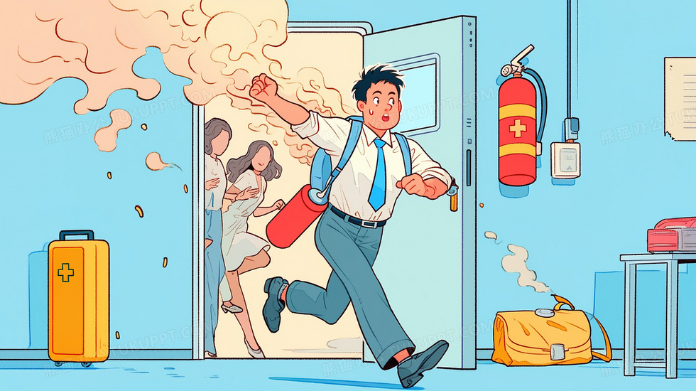 本作品内容为手拿灭火器灭火的男子插画, 格式为 jpg, 大小3 MB, 图片尺寸为2912 x 1632, 源文件无水印, 欢迎使用熊猫办公。 如认为平台内容涉嫌侵权,可通过邮件:tousu@tukuppt.com提出书面通知,我们将及时处理。