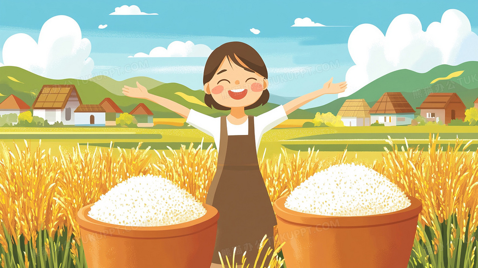本作品内容为世界粮食日秋天大米丰收的女孩插画, 格式为 jpg, 大小3 MB, 图片尺寸为2912 x 1632, 源文件无水印, 欢迎使用熊猫办公。 如认为平台内容涉嫌侵权,可通过邮件:tousu@tukuppt.com提出书面通知,我们将及时处理。