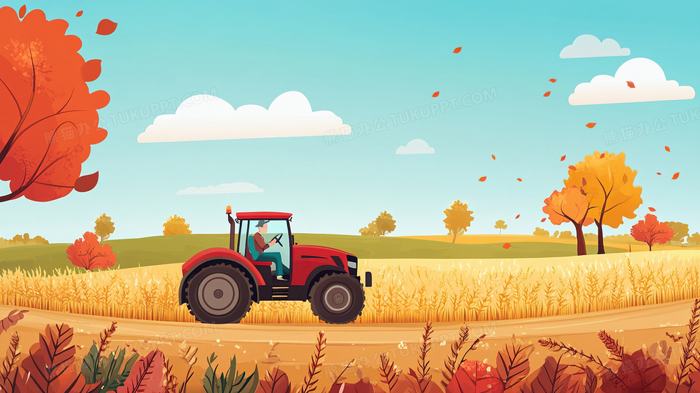 本作品内容为秋天丰收拖拉机庄稼农民插画, 格式为 jpg, 大小3 MB, 图片尺寸为2912 x 1632, 源文件无水印, 欢迎使用熊猫办公。 如认为平台内容涉嫌侵权,可通过邮件:tousu@tukuppt.com提出书面通知,我们将及时处理。