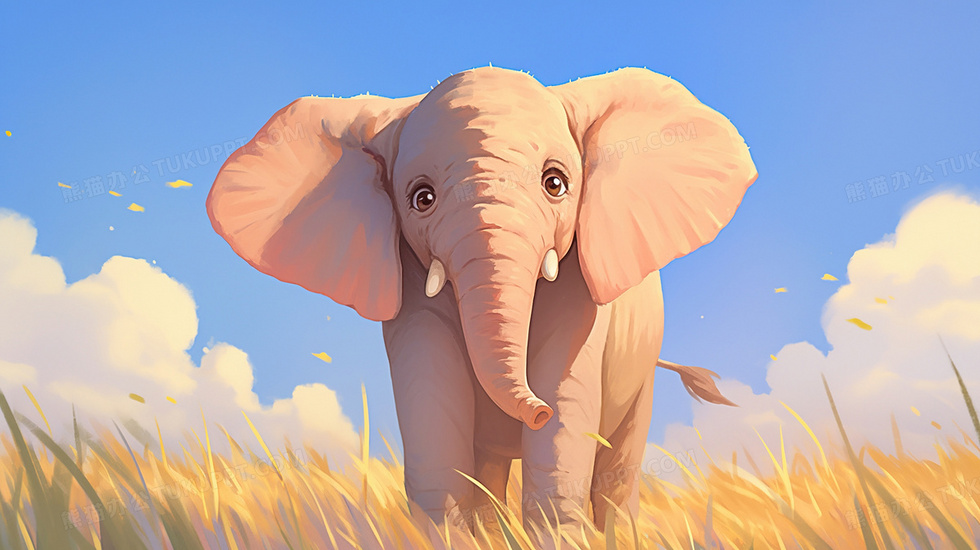 本作品内容为大自然草地上动物大象插画, 格式为 jpg, 大小2 MB, 图片尺寸为2912 x 1632, 源文件无水印, 欢迎使用熊猫办公。 如认为平台内容涉嫌侵权,可通过邮件:tousu@tukuppt.com提出书面通知,我们将及时处理。