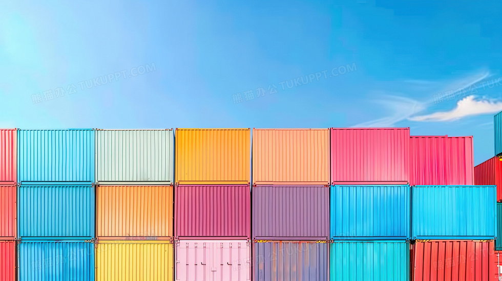 本作品内容为彩色集装箱货物运输背景, 格式为 jpg, 大小3 MB, 图片尺寸为2912 x 1632, 作品中背景图片无需修改, 源文件无水印,可以直接使用, 欢迎使用熊猫办公。 如认为平台内容涉嫌侵权,可通过邮件:tousu@tukuppt.com提出书面通知,我们将及时处理。