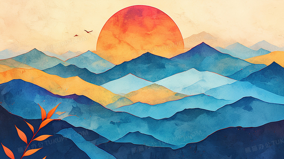 本作品内容为简约风格层次感明显山和夕阳背景, 格式为 jpg, 大小3 MB, 图片尺寸为2912 x 1632, 作品中背景图片无需修改, 源文件无水印,可以直接使用, 欢迎使用熊猫办公。 如认为平台内容涉嫌侵权,可通过邮件:tousu@tukuppt.com提出书面通知,我们将及时处理。