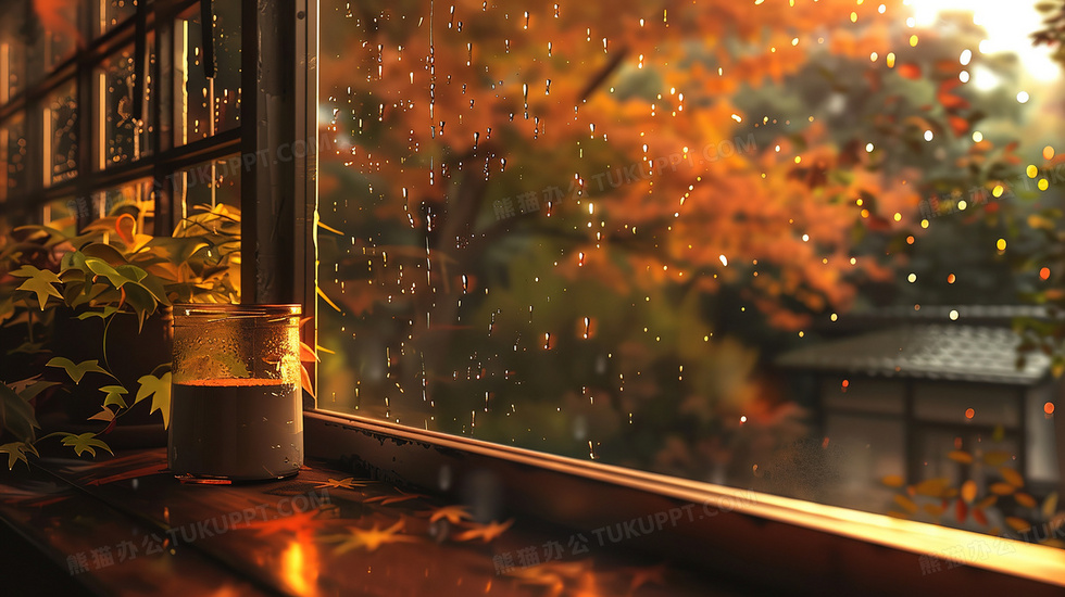 本作品内容为秋季雨天风景枫叶窗台插画, 格式为 jpg, 大小3 MB, 图片尺寸为2912 x 1632, 源文件无水印, 欢迎使用熊猫办公。 如认为平台内容涉嫌侵权,可通过邮件:tousu@tukuppt.com提出书面通知,我们将及时处理。