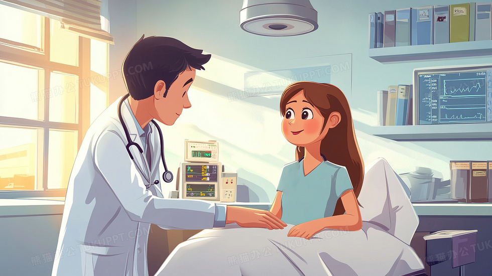 本作品内容为医生观察住院的病人病况插画, 格式为 jpg, 大小3 MB, 图片尺寸为2912 x 1632, 源文件无水印, 欢迎使用熊猫办公。 如认为平台内容涉嫌侵权,可通过邮件:tousu@tukuppt.com提出书面通知,我们将及时处理。