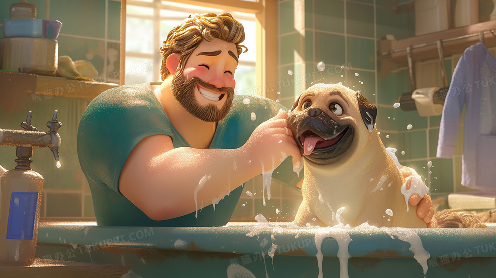 本作品内容为男人给狗洗澡宠物插画, 格式为 jpg, 大小3 MB, 图片尺寸为2912 x 1632, 源文件无水印, 欢迎使用熊猫办公。 如认为平台内容涉嫌侵权,可通过邮件:tousu@tukuppt.com提出书面通知,我们将及时处理。