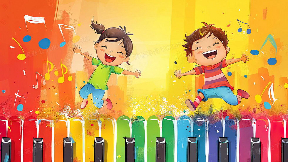 本作品内容为钢琴按键上跳舞的孩子们插画, 格式为 jpg, 大小3 MB, 图片尺寸为2912 x 1632, 源文件无水印, 欢迎使用熊猫办公。 如认为平台内容涉嫌侵权,可通过邮件:tousu@tukuppt.com提出书面通知,我们将及时处理。