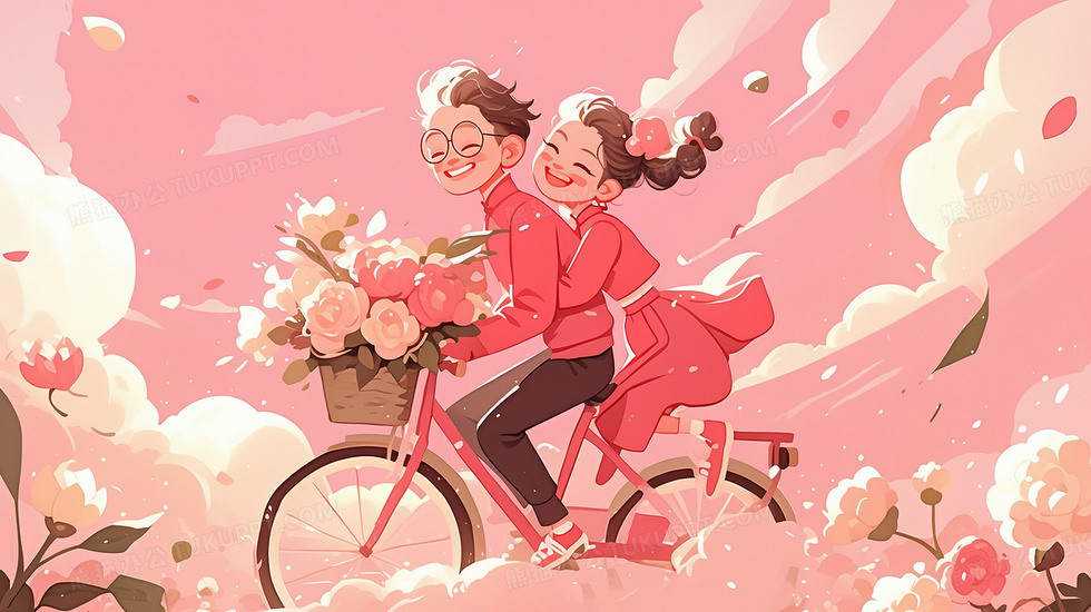 本作品内容为卡通七夕情侣骑单车插画, 格式为 jpg, 大小3 MB, 图片尺寸为2912 x 1632, 源文件无水印, 欢迎使用熊猫办公。 如认为平台内容涉嫌侵权,可通过邮件:tousu@tukuppt.com提出书面通知,我们将及时处理。