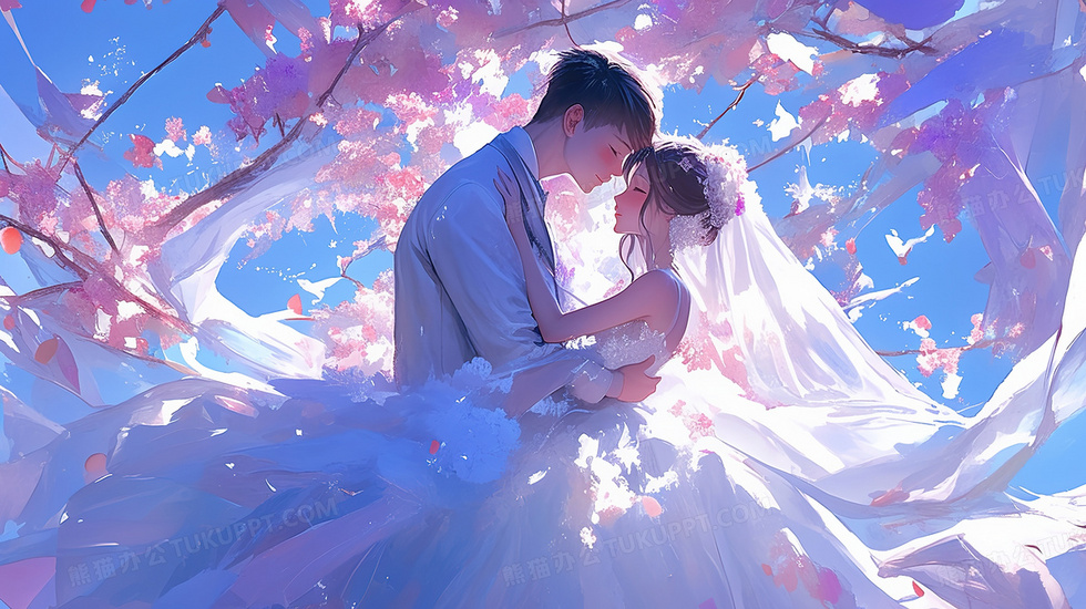 本作品内容为卡通浪漫七夕新郎新娘结婚插画, 格式为 jpg, 大小3 MB, 图片尺寸为2912 x 1632, 源文件无水印, 欢迎使用熊猫办公。 如认为平台内容涉嫌侵权,可通过邮件:tousu@tukuppt.com提出书面通知,我们将及时处理。