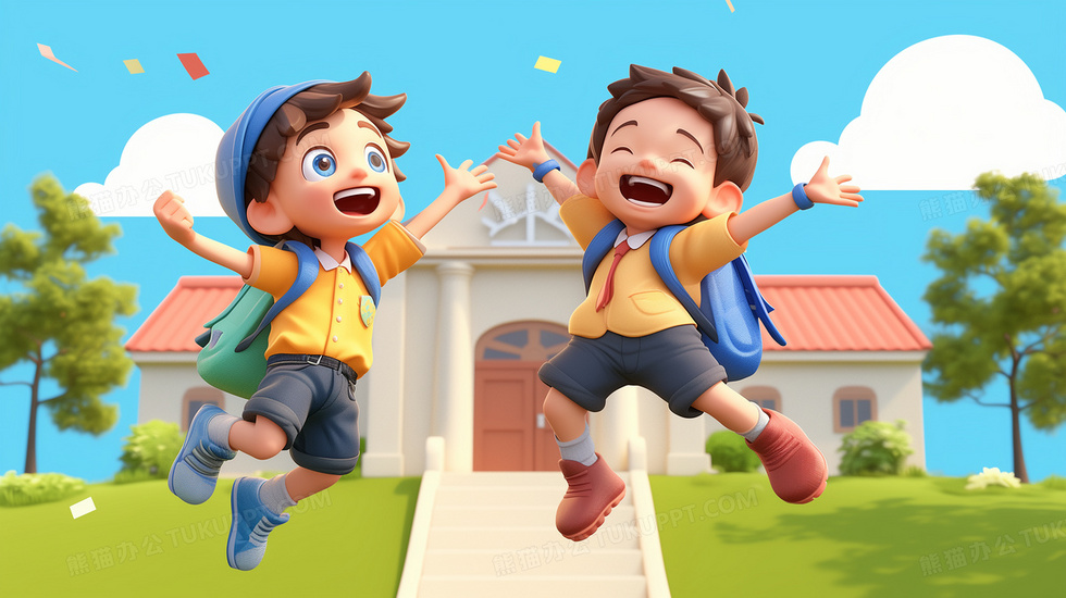 本作品内容为幼儿园放学的孩子开心跳跃欢呼插画, 格式为 jpg, 大小5 MB, 图片尺寸为2912 x 1632, 源文件无水印, 欢迎使用熊猫办公。 如认为平台内容涉嫌侵权,可通过邮件:tousu@tukuppt.com提出书面通知,我们将及时处理。