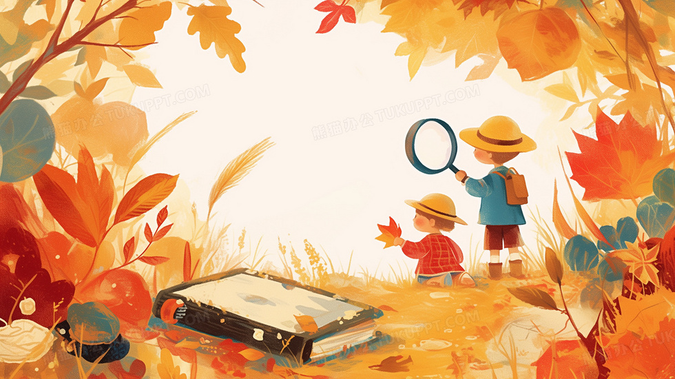 本作品内容为幼儿园孩子拿着放大镜观察枫叶的纹理造型绘本风格插画, 格式为 jpg, 大小6 MB, 图片尺寸为2912 x 1632, 源文件无水印, 欢迎使用熊猫办公。 如认为平台内容涉嫌侵权,可通过邮件:tousu@tukuppt.com提出书面通知,我们将及时处理。
