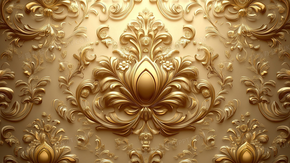 本作品内容为简约复古金色花纹的背景, 格式为 jpg, 大小4 MB, 图片尺寸为2912 x 1632, 作品中背景图片无需修改, 源文件无水印,可以直接使用, 欢迎使用熊猫办公。 如认为平台内容涉嫌侵权,可通过邮件:tousu@tukuppt.com提出书面通知,我们将及时处理。