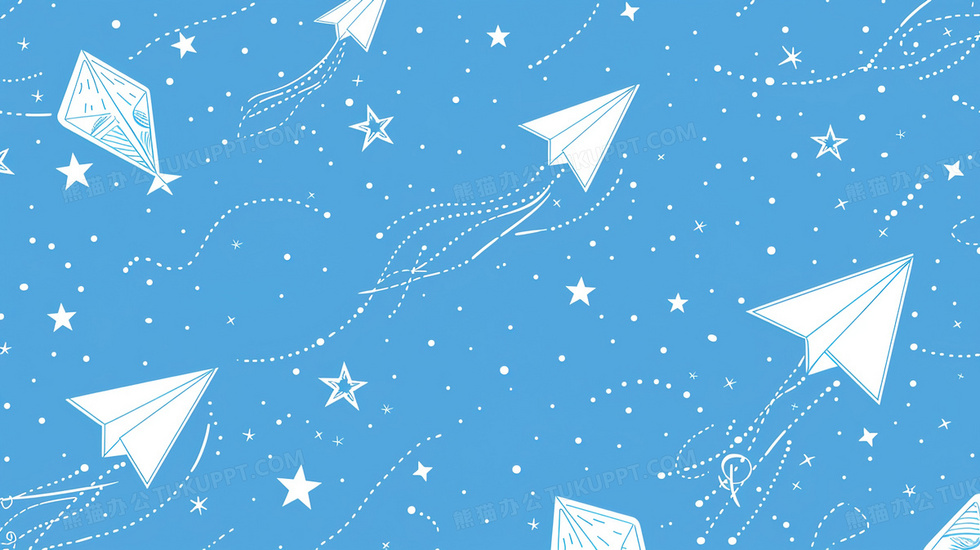 本作品内容为简约卡通纸飞机背景, 格式为 jpg, 大小2 MB, 图片尺寸为2912 x 1632, 作品中背景图片无需修改, 源文件无水印,可以直接使用, 欢迎使用熊猫办公。 如认为平台内容涉嫌侵权,可通过邮件:tousu@tukuppt.com提出书面通知,我们将及时处理。
