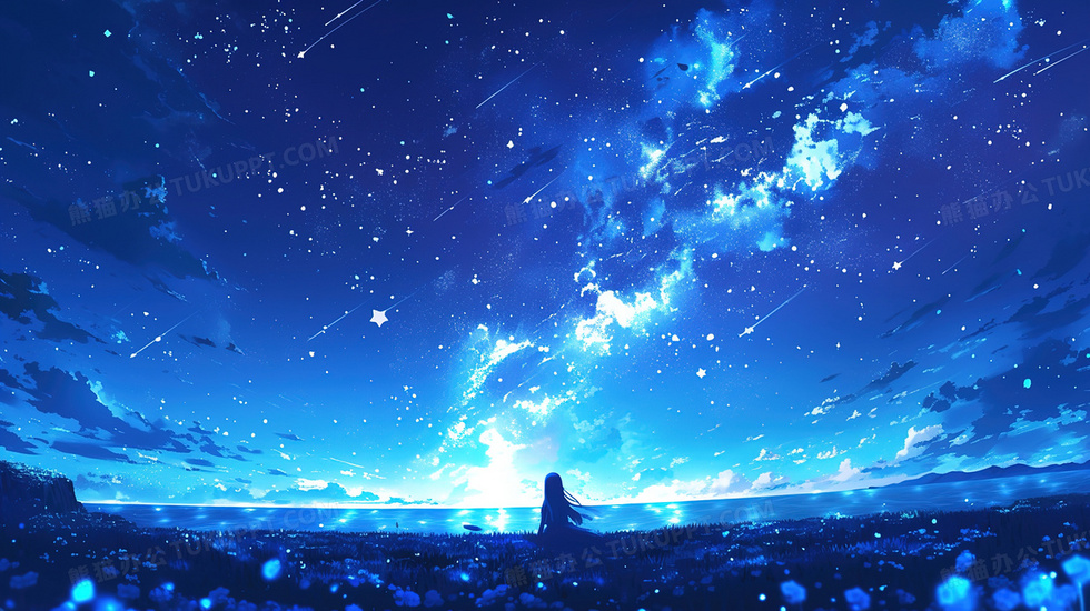 本作品内容为草地看星空的女孩背影插画, 格式为 jpg, 大小3 MB, 图片尺寸为2912 x 1632, 源文件无水印, 欢迎使用熊猫办公。 如认为平台内容涉嫌侵权,可通过邮件:tousu@tukuppt.com提出书面通知,我们将及时处理。