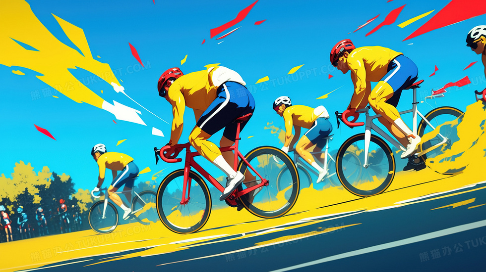 本作品内容为竞技运动自行车比赛插画, 格式为 jpg, 大小3 MB, 图片尺寸为2912 x 1632, 源文件无水印, 欢迎使用熊猫办公。 如认为平台内容涉嫌侵权,可通过邮件:tousu@tukuppt.com提出书面通知,我们将及时处理。