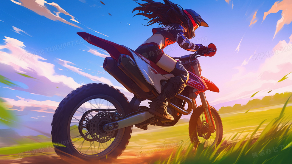 本作品内容为山地摩托车的女骑手插画, 格式为 jpg, 大小3 MB, 图片尺寸为2912 x 1632, 源文件无水印, 欢迎使用熊猫办公。 如认为平台内容涉嫌侵权,可通过邮件:tousu@tukuppt.com提出书面通知,我们将及时处理。