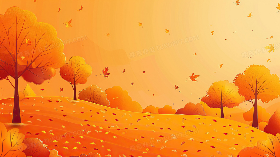 本作品内容为橘色秋季落叶树叶背景, 格式为 jpg, 大小3 MB, 图片尺寸为2912 x 1632, 作品中背景图片无需修改, 源文件无水印,可以直接使用, 欢迎使用熊猫办公。 如认为平台内容涉嫌侵权,可通过邮件:tousu@tukuppt.com提出书面通知,我们将及时处理。