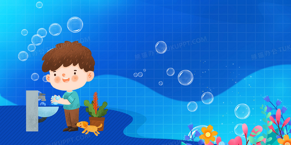 本作品内容为蓝色简约大气洗手背景, 格式为 psd, 大小28 MB, 图片尺寸为4724 x 2362, 作品中背景图片无需修改, 源文件无水印,可以直接使用, 欢迎使用熊猫办公。 如认为平台内容涉嫌侵权,可通过邮件:tousu@tukuppt.com提出书面通知,我们将及时处理。