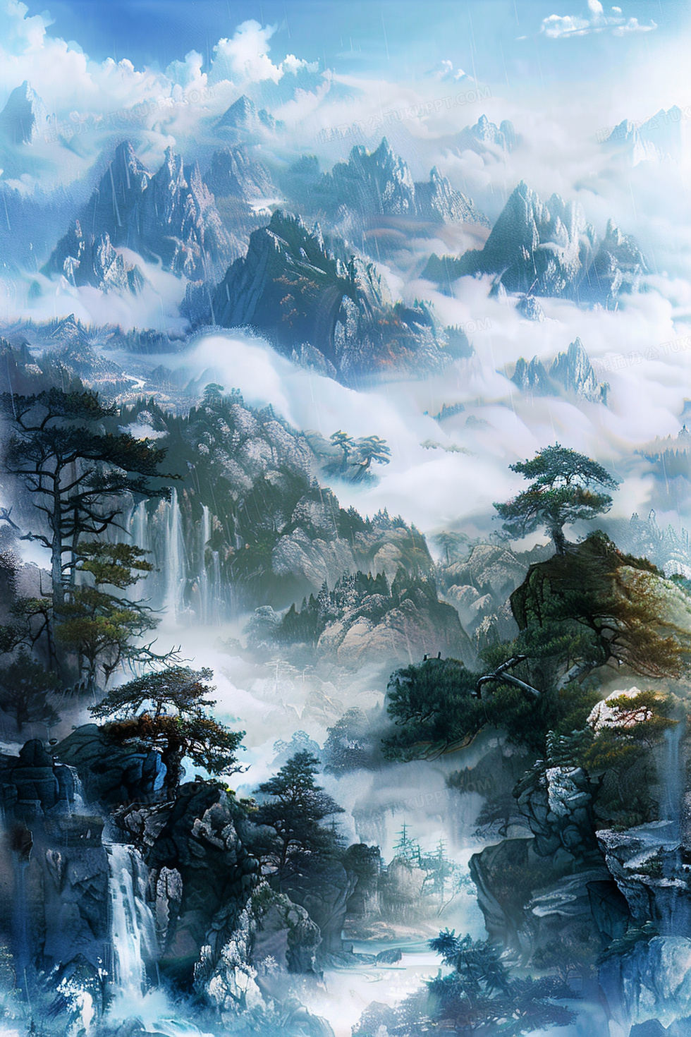 本作品内容为中国水墨山水画插画, 格式为 jpg, 大小4 MB, 图片尺寸为1792 x 2688, 源文件无水印, 欢迎使用熊猫办公。 如认为平台内容涉嫌侵权,可通过邮件:tousu@tukuppt.com提出书面通知,我们将及时处理。