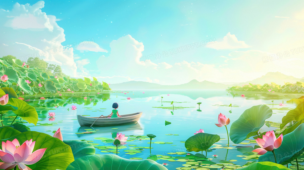本作品内容为夏季池塘划船的小女孩背影插画, 格式为 jpg, 大小3 MB, 图片尺寸为2912 x 1632, 源文件无水印, 欢迎使用熊猫办公。 如认为平台内容涉嫌侵权,可通过邮件:tousu@tukuppt.com提出书面通知,我们将及时处理。