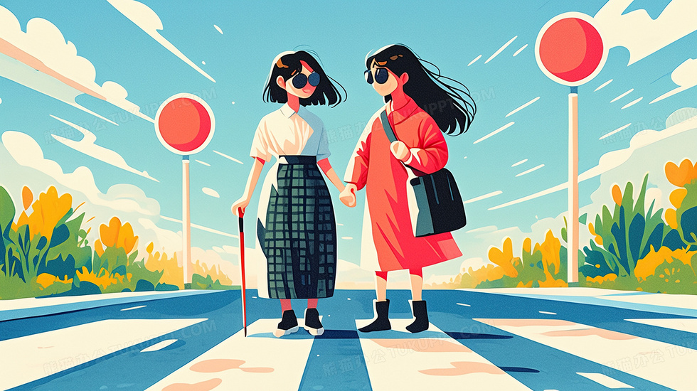 本作品内容为卡通女孩盲人过马路插画, 格式为 jpg, 大小3 MB, 图片尺寸为2912 x 1632, 源文件无水印, 欢迎使用熊猫办公。 如认为平台内容涉嫌侵权,可通过邮件:tousu@tukuppt.com提出书面通知,我们将及时处理。