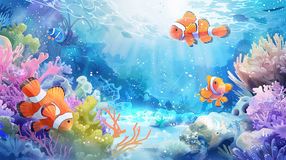 本作品内容为手绘唯美海底世界小鱼插画, 格式为 jpg, 大小4 MB, 图片尺寸为2912 x 1632, 源文件无水印, 欢迎使用熊猫办公。 如认为平台内容涉嫌侵权,可通过邮件:tousu@tukuppt.com提出书面通知,我们将及时处理。