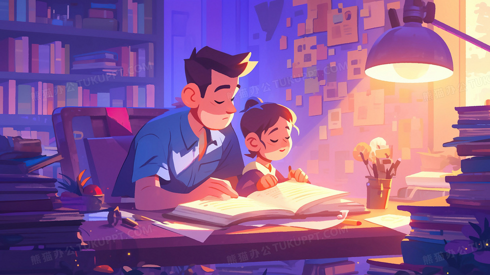 本作品内容为家长夜晚给学生辅导家庭作业插画, 格式为 jpg, 大小2 MB, 图片尺寸为2912 x 1632, 源文件无水印, 欢迎使用熊猫办公。 如认为平台内容涉嫌侵权,可通过邮件:tousu@tukuppt.com提出书面通知,我们将及时处理。