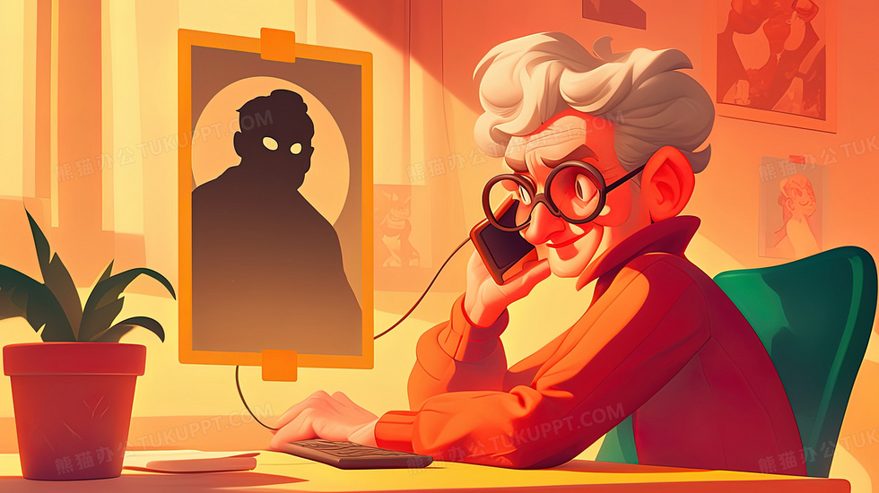 本作品内容为电子网络安全电信诈骗老人插画, 格式为 jpg, 大小2 MB, 图片尺寸为2912 x 1632, 源文件无水印, 欢迎使用熊猫办公。 如认为平台内容涉嫌侵权,可通过邮件:tousu@tukuppt.com提出书面通知,我们将及时处理。