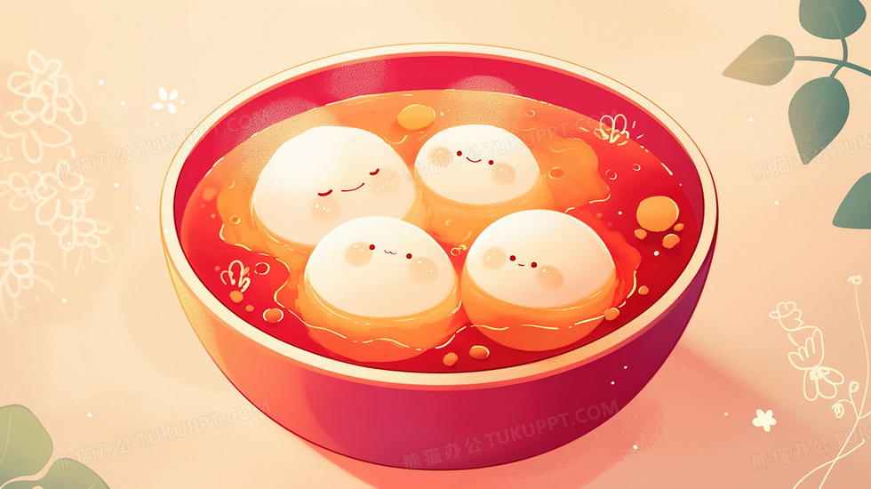 本作品内容为桌面上的可爱拟人美食汤圆插画, 格式为 jpg, 大小2 MB, 图片尺寸为2912 x 1632, 源文件无水印, 欢迎使用熊猫办公。 如认为平台内容涉嫌侵权,可通过邮件:tousu@tukuppt.com提出书面通知,我们将及时处理。