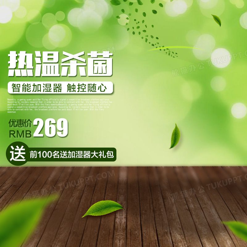 本作品内容为加湿器绿色清新主图, 格式为 psd, 图片尺寸为800 x 800, 作品中背景图片无需修改, 源文件无水印,可以直接使用, 欢迎使用熊猫办公。 如认为平台内容涉嫌侵权,可通过邮件:tousu@tukuppt.com提出书面通知,我们将及时处理。