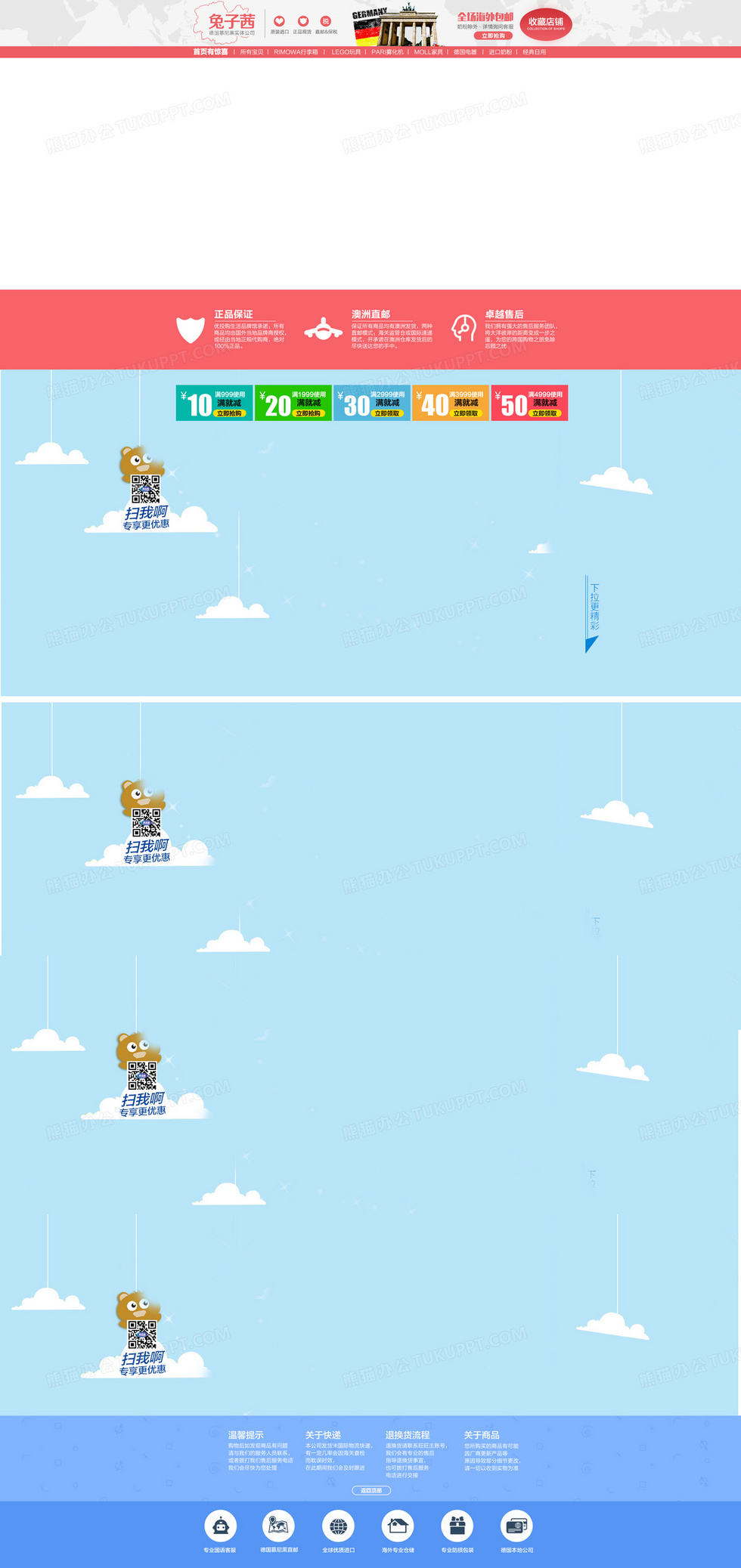 本作品内容为代购店铺首页背景, 格式为 psd, 图片尺寸为1920 x 4065, 作品中背景图片无需修改, 源文件无水印,可以直接使用, 欢迎使用熊猫办公。 如认为平台内容涉嫌侵权,可通过邮件:tousu@tukuppt.com提出书面通知,我们将及时处理。