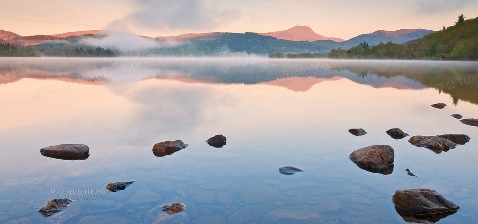 本作品内容为湖水自然风光背景, 格式为 jpg, 图片尺寸为1920 x 900, 作品中背景图片无需修改, 源文件无水印,可以直接使用, 欢迎使用熊猫办公。 如认为平台内容涉嫌侵权,可通过邮件:tousu@tukuppt.com提出书面通知,我们将及时处理。