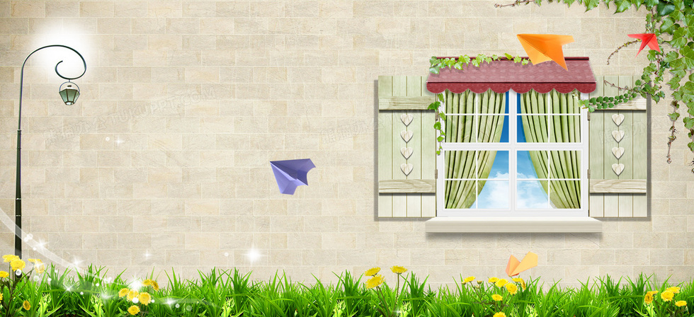 本作品内容为卡通清新家居窗口纸飞机背景banner, 格式为 psd, 图片尺寸为1920 x 877, 作品中背景图片无需修改, 源文件无水印,可以直接使用, 欢迎使用熊猫办公。 如认为平台内容涉嫌侵权,可通过邮件:tousu@tukuppt.com提出书面通知,我们将及时处理。