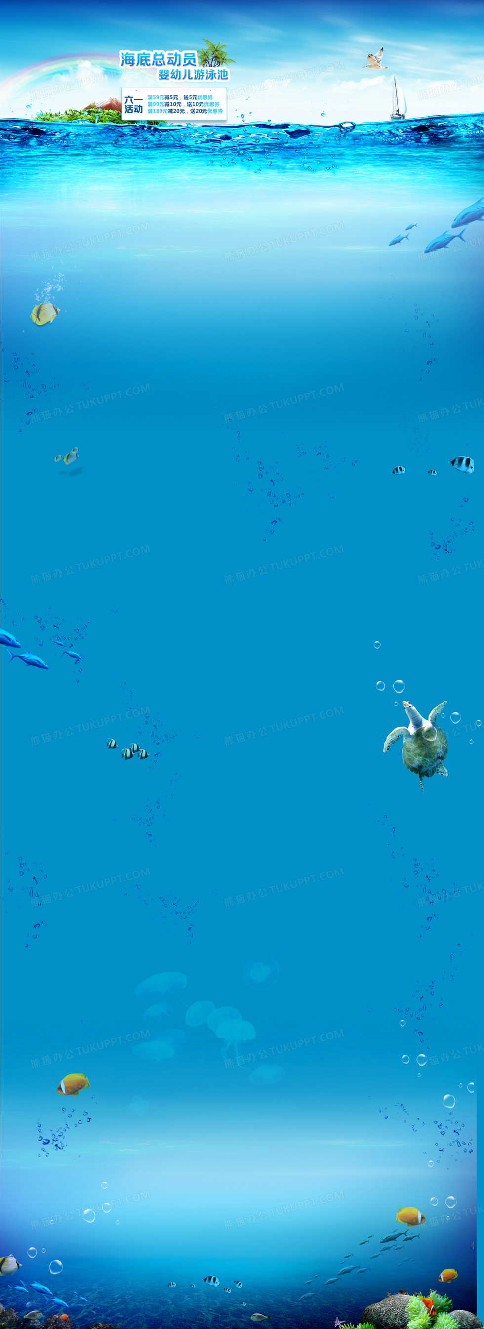 本作品内容为淘宝海洋主题首页背景模板, 格式为 psd, 图片尺寸为1920 x 5271, 作品中背景图片无需修改, 源文件无水印,可以直接使用, 欢迎使用熊猫办公。 如认为平台内容涉嫌侵权,可通过邮件:tousu@tukuppt.com提出书面通知,我们将及时处理。