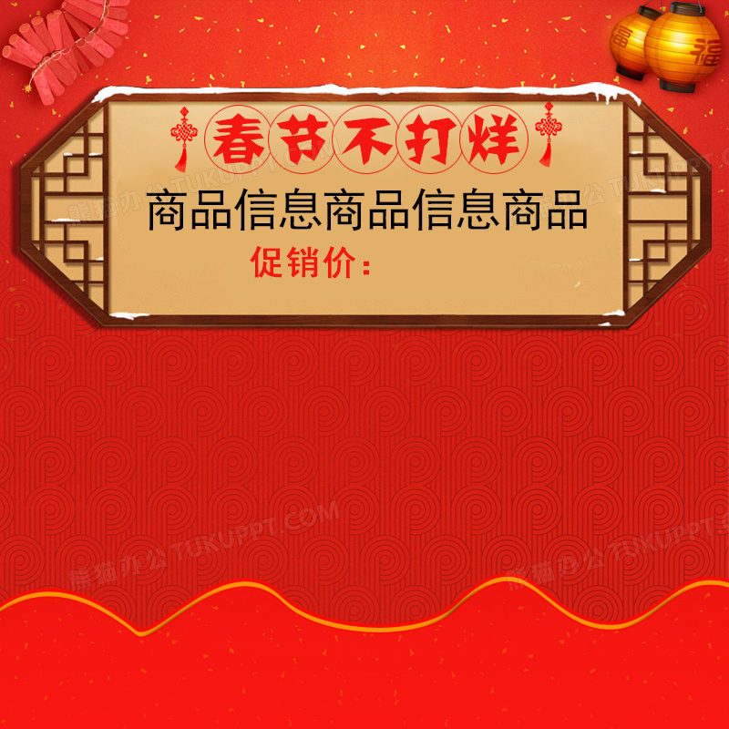 本作品内容为春节不打烊中国风PSD分层主图背景素材, 格式为 psd, 图片尺寸为800 x 800, 作品中背景图片无需修改, 源文件无水印,可以直接使用, 欢迎使用熊猫办公。 如认为平台内容涉嫌侵权,可通过邮件:tousu@tukuppt.com提出书面通知,我们将及时处理。