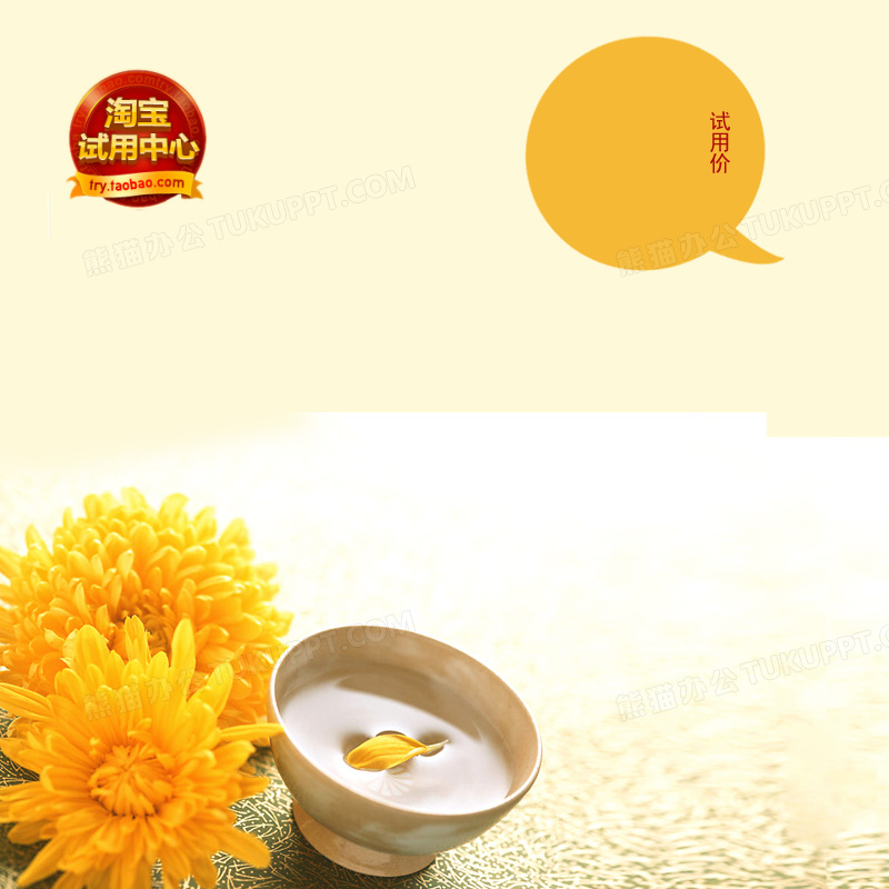 本作品内容为淘宝试用菊花酒背景图, 格式为 psd, 图片尺寸为800 x 800, 作品中背景图片无需修改, 源文件无水印,可以直接使用, 欢迎使用熊猫办公。 如认为平台内容涉嫌侵权,可通过邮件:tousu@tukuppt.com提出书面通知,我们将及时处理。