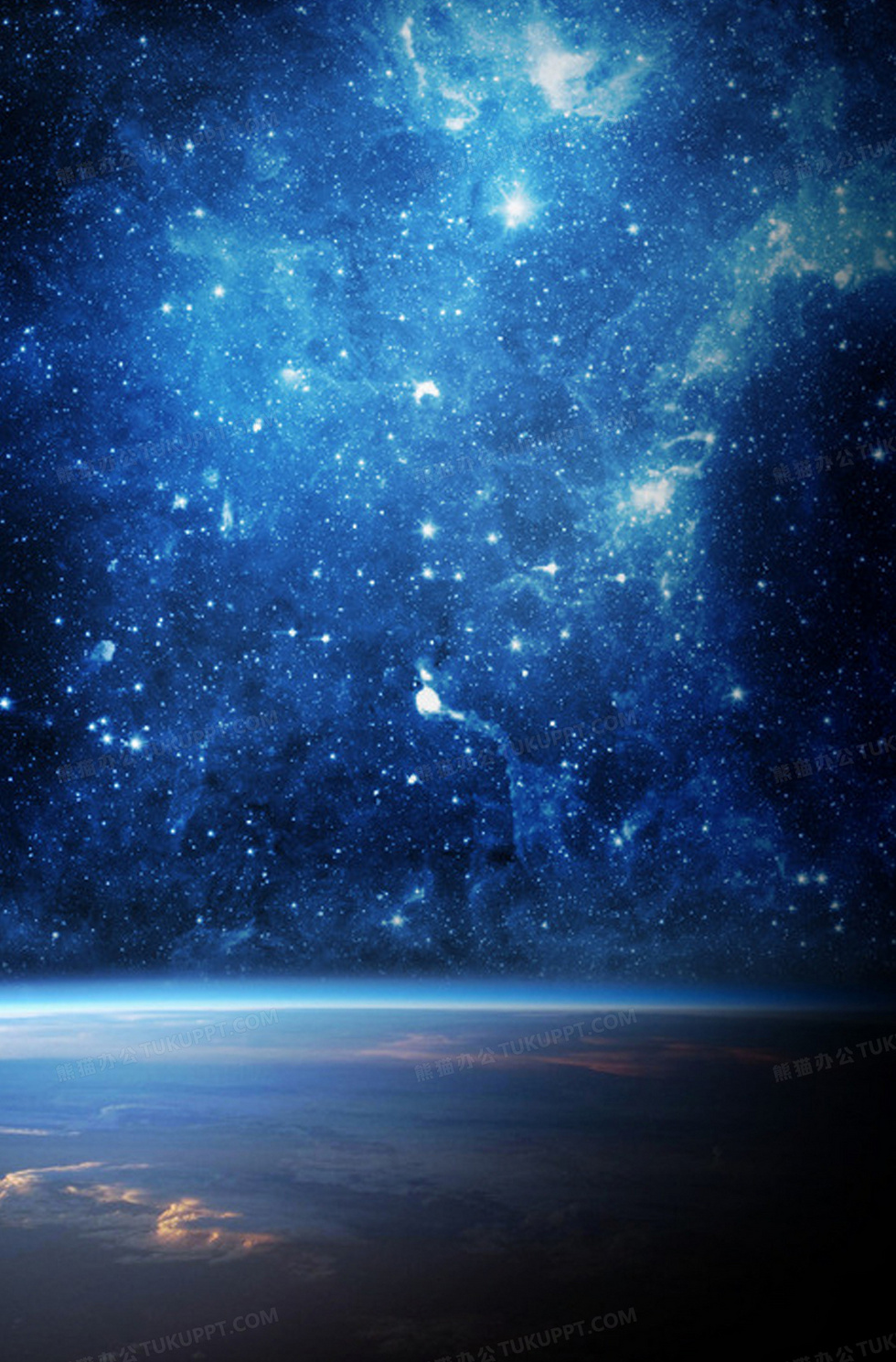 本作品内容为蓝色星空地球海报背景素材, 格式为 psd, 图片尺寸为2022 x 3071, 作品中背景图片无需修改, 源文件无水印,可以直接使用, 欢迎使用熊猫办公。 如认为平台内容涉嫌侵权,可通过邮件:tousu@tukuppt.com提出书面通知,我们将及时处理。